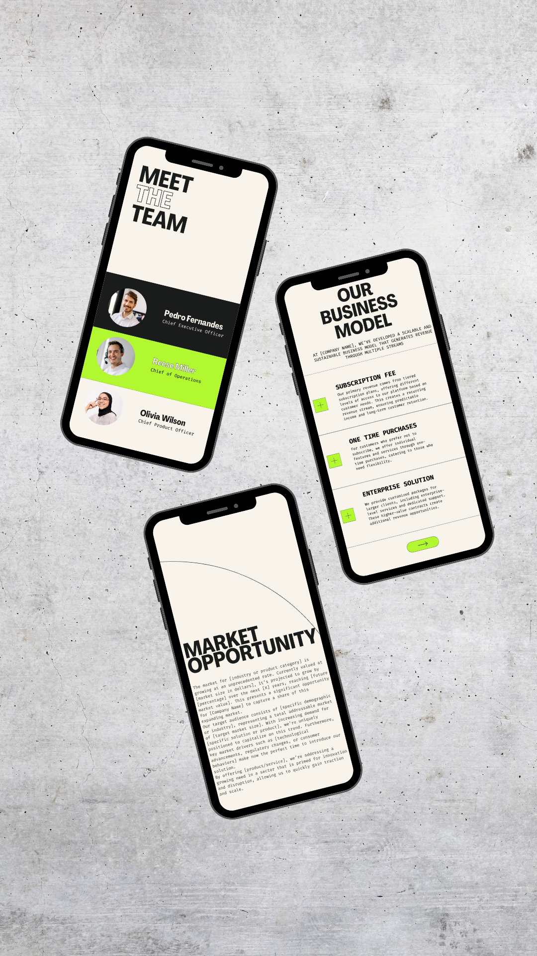 This template ensures the presentation is adaptable for both mobile and traditional presentation formats, offering flexibility and professionalism.